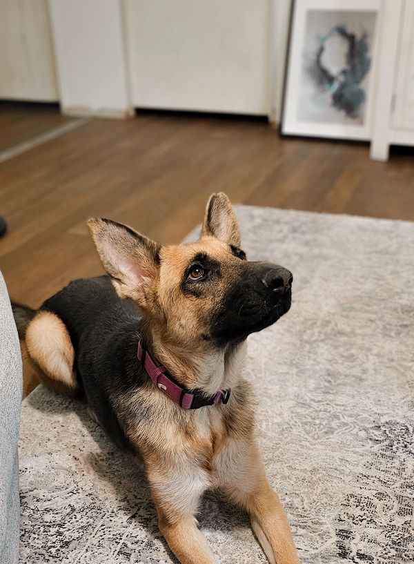 Celine- She is a sweet velcro shepherd who loves to go anywhere you go, or stay at home and binge watch your favorite show.